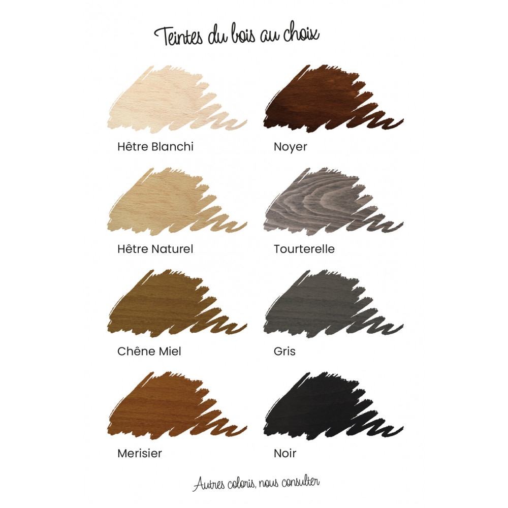 Possibilité de personnaliser à volonté:- Caisse en hêtre massif (Hêtre Blanchi / Noyer / Hêtre Naturel / Tourterelle / Chêne Miel / Gris / Merisier / Noir / Pour d'autres coloris, nous consulter.