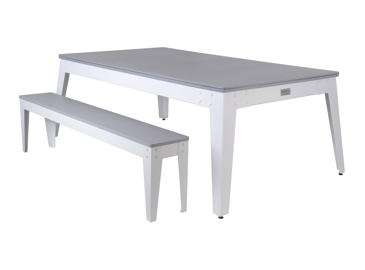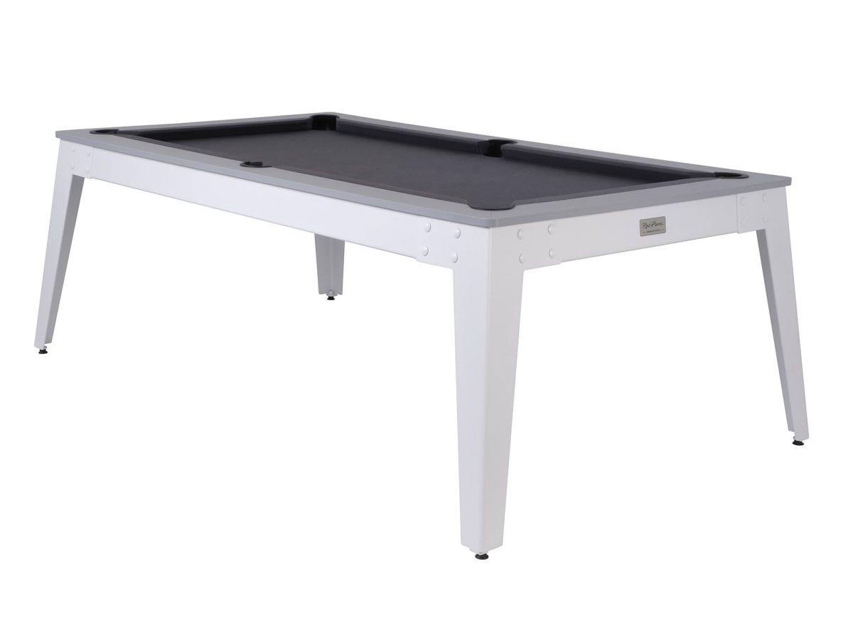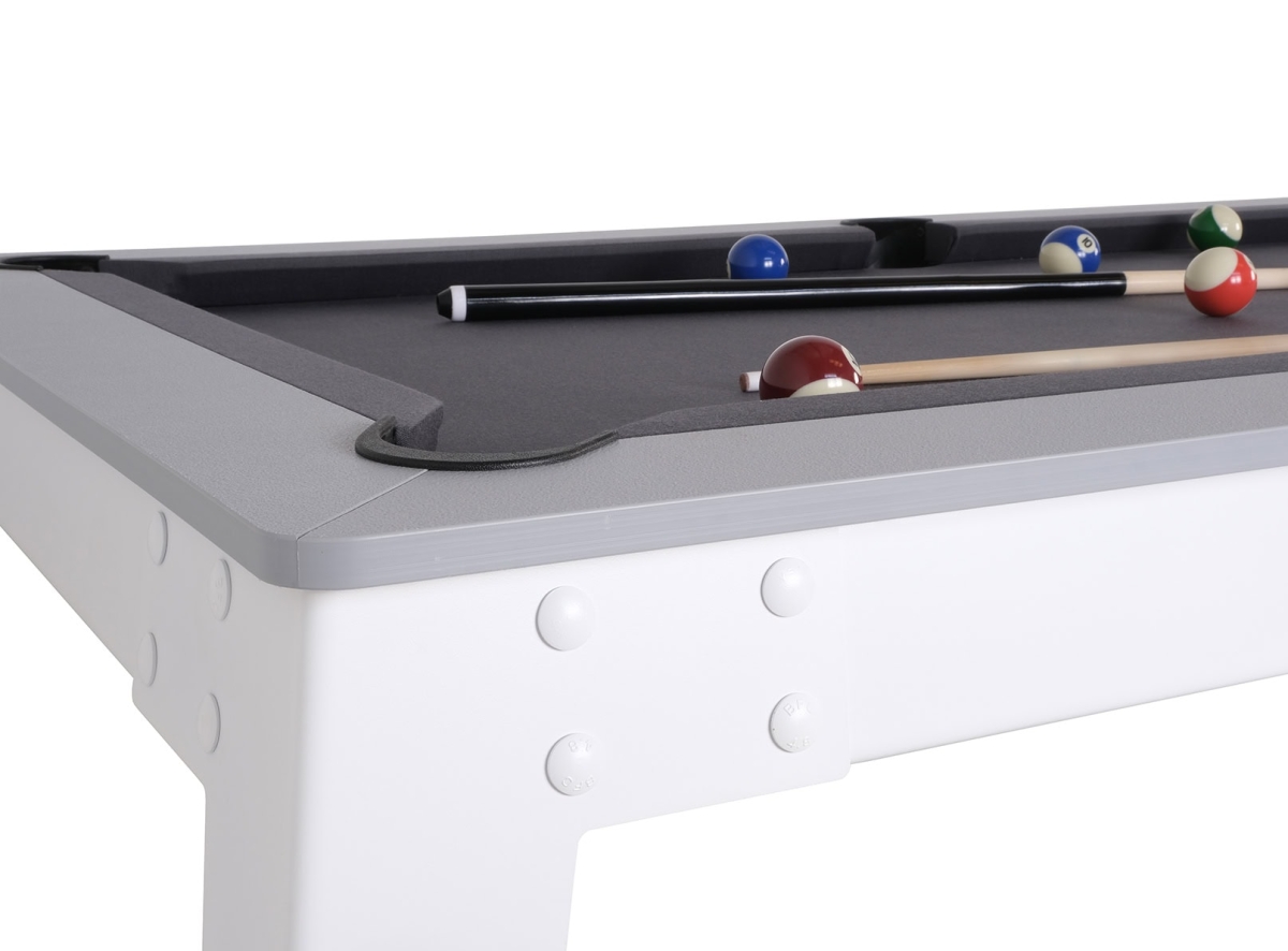 Spécialement conçu pour une utilisation extérieure! En plein dans la tendance Indus’-Chic, ce billard avec pieds compas blancs et cadre gris saura sublimer votre terrasse. Transformable en table de jardin, avec l’option plateau table en 2 parties (option à 499€ TTC).